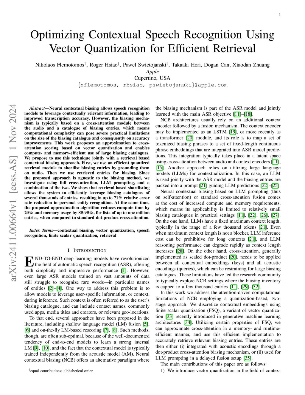Optimizing Contextual Speech Recognition Using Vector Quantization for