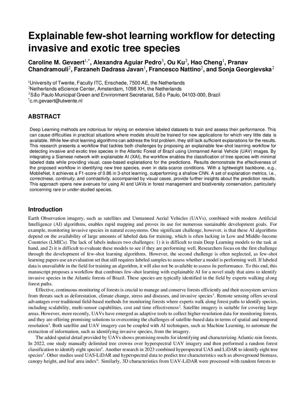 Explainable few-shot learning workflow for detecting invasive and exotic