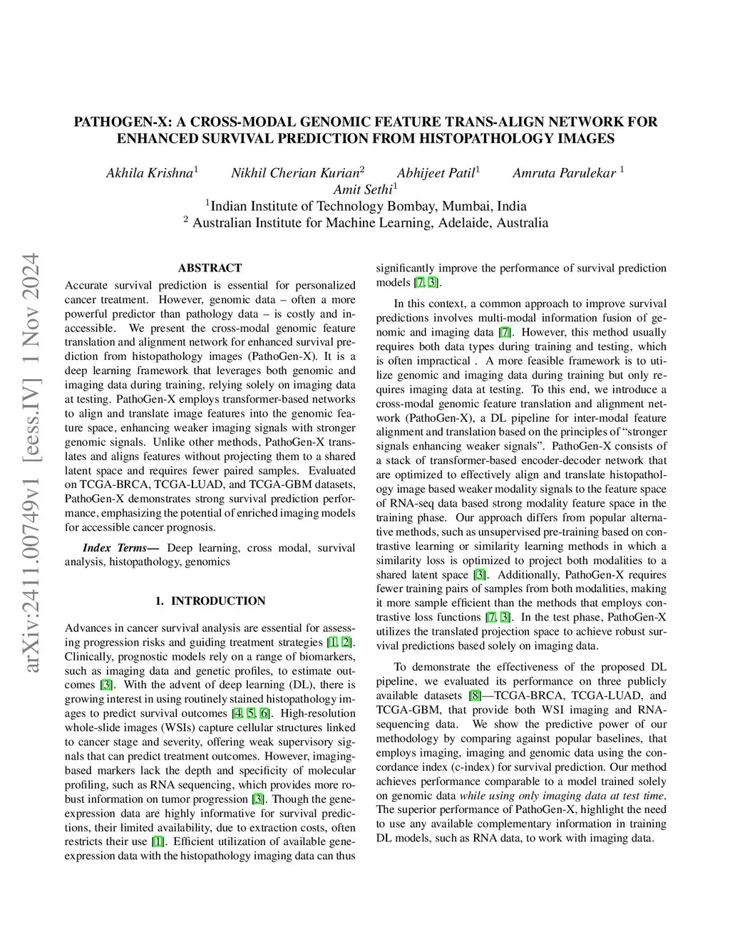 PathoGen-X: A Cross-Modal Genomic Feature Trans-Align Network for