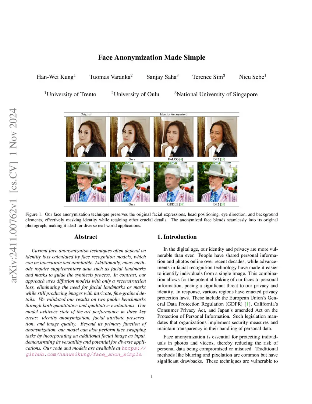 Face Anonymization Made Simple