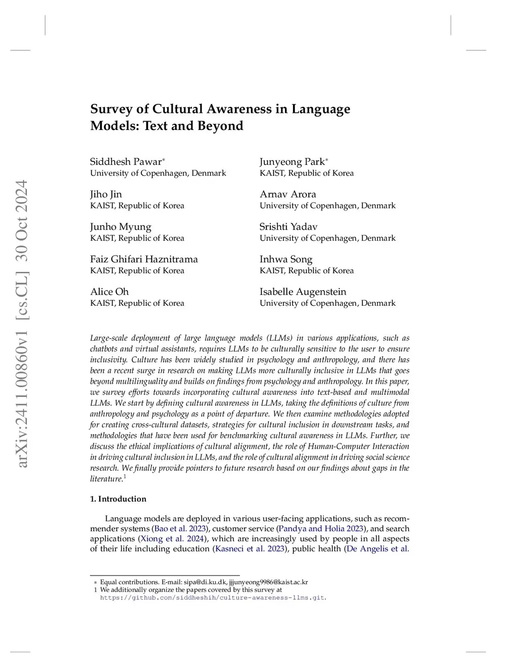 Survey of Cultural Awareness in Language Models: Text and Beyond