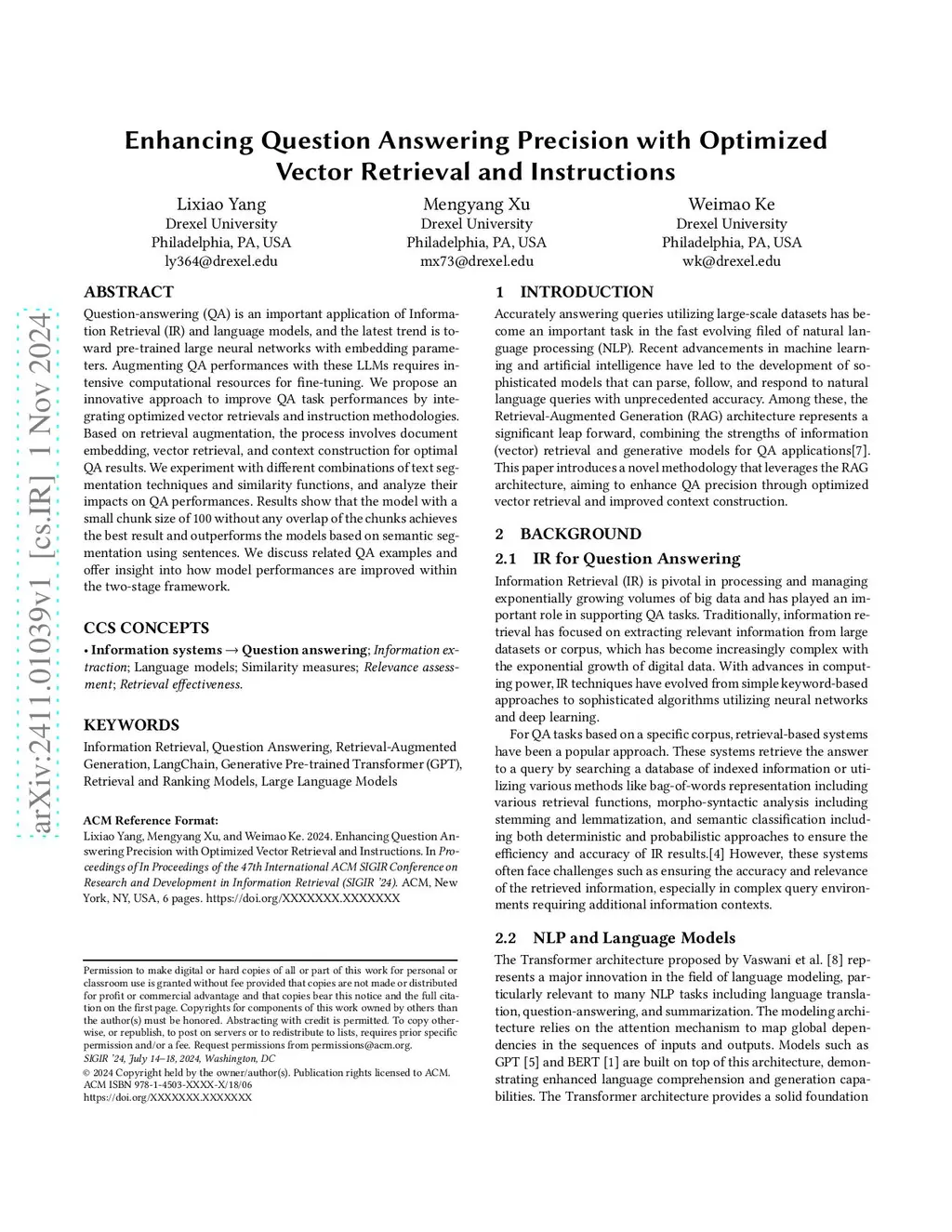 Enhancing Question Answering Precision with Optimized Vector Retrieval