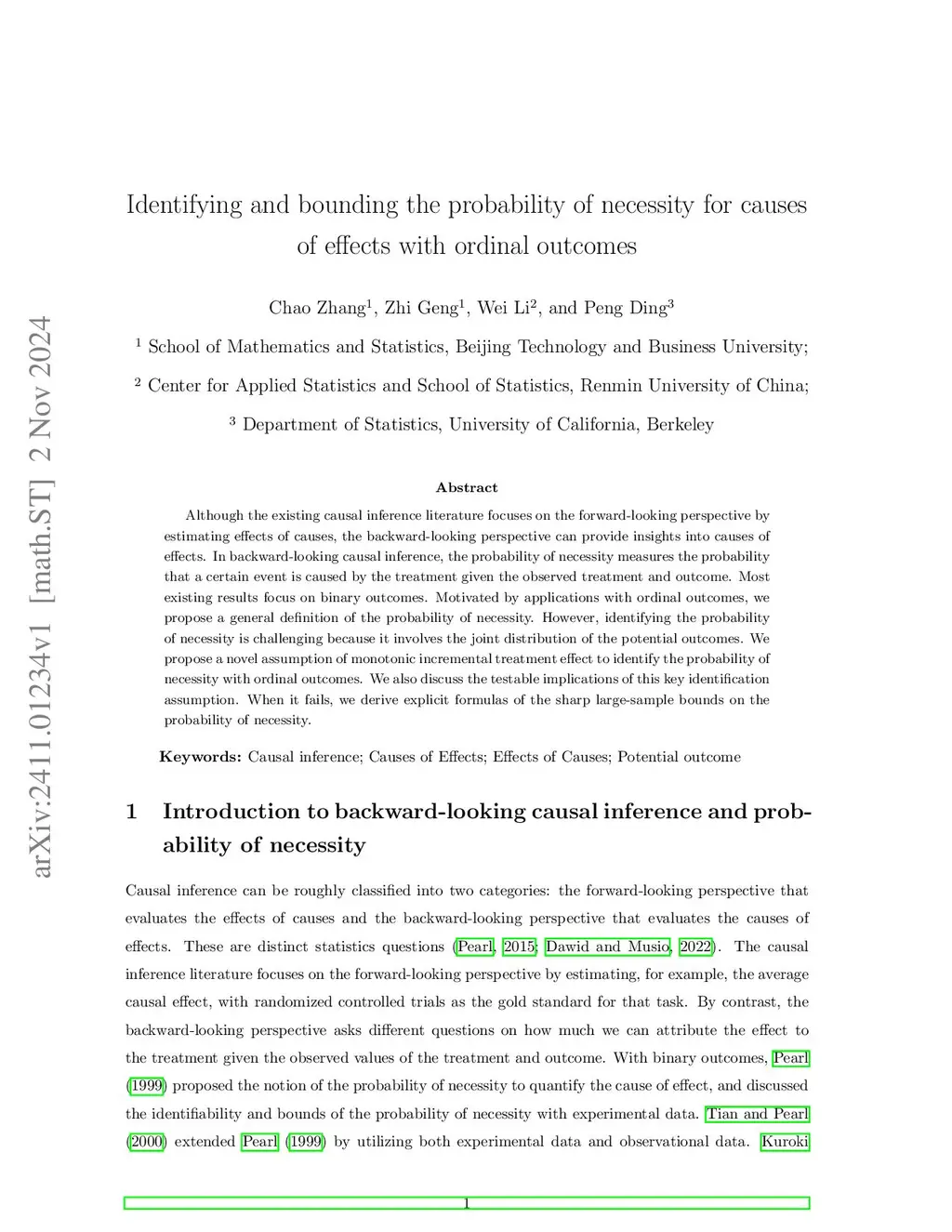 Although the existing causal inference literature focuses on the forward-looking perspective by estimating effects of causes, the backward-looking perspective can provide insights into causes of effects. In backward-looking causal inference, the probability of necessity measures the probability that a certain event is caused by the treatment given the observed treatment and outcome. Most existing results focus on binary outcomes. Motivated by applications with ordinal outcomes, we propose a general definition of the probability of necessity. However, identifying the probability of necessity is challenging because it involves the joint distribution of the potential outcomes. We propose a novel assumption of monotonic incremental treatment effect to identify the probability of necessity with ordinal outcomes. We also discuss the testable implications of this key identification assumption. When it fails, we derive explicit formulas of the sharp large-sample bounds on the probability of necessity.
