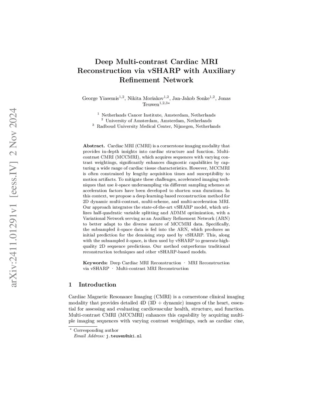 Cardiac MRI (CMRI) is a cornerstone imaging modality that provides in-depth insights into cardiac structure and function. Multi-contrast CMRI (MCCMRI), which acquires sequences with varying contrast weightings, significantly enhances diagnostic capabilities by capturing a wide range of cardiac tissue characteristics. However, MCCMRI is often constrained by lengthy acquisition times and susceptibility to motion artifacts. To mitigate these challenges, accelerated imaging techniques that use k-space undersampling via different sampling schemes at acceleration factors have been developed to shorten scan durations. In this context, we propose a deep learning-based reconstruction method for 2D dynamic multi-contrast, multi-scheme, and multi-acceleration MRI. Our approach integrates the state-of-the-art vSHARP model, which utilizes half-quadratic variable splitting and ADMM optimization, with a Variational Network serving as an Auxiliary Refinement Network (ARN) to better adapt to the diverse nature of MCCMRI data. Specifically, the subsampled k-space data is fed into the ARN, which produces an initial prediction for the denoising step used by vSHARP. This, along with the subsampled k-space, is then used by vSHARP to generate high-quality 2D sequence predictions. Our method outperforms traditional reconstruction techniques and other vSHARP-based models.