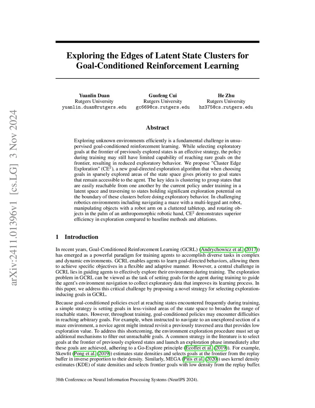 Exploring the Edges of Latent State Clusters for Goal-Conditioned