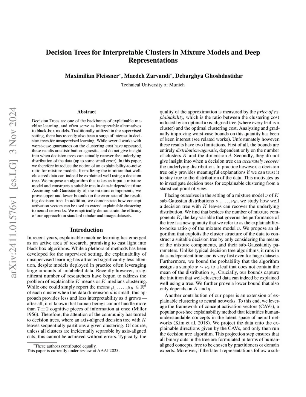 We study the explainable clustering problem first posed by Moshkovitz, Dasgupta, Rashtchian, and Frost (ICML 2020). The goal of explainable clustering is to fit an axis-aligned decision tree with leaves and minimal clustering cost (where every leaf is a cluster). The fundamental theoretical question in this line of work is the \textit{price of explainability}, defined as the ratio between the clustering cost of the tree and the optimal cost. Numerous papers have provided worst-case guarantees on this quantity. For -medians, it has recently been shown that the worst-case price of explainability is . While this settles the matter from a data-agnostic point of view, two important questions remain unanswered: Are tighter guarantees possible for well-clustered data? And can we trust decision trees to recover underlying cluster structures? In this paper, we place ourselves in a statistical setting of mixture models to answer both questions. We prove that better guarantees are indeed feasible for well-clustered data. Our algorithm takes as input a mixture model and constructs a tree in data-independent time. We then extend our analysis to kernel clustering, deriving new guarantees that significantly improve over existing worst-case bounds.