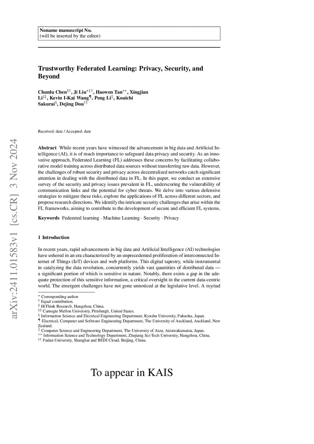 Trustworthy Federated Learning: Privacy, Security, and Beyond