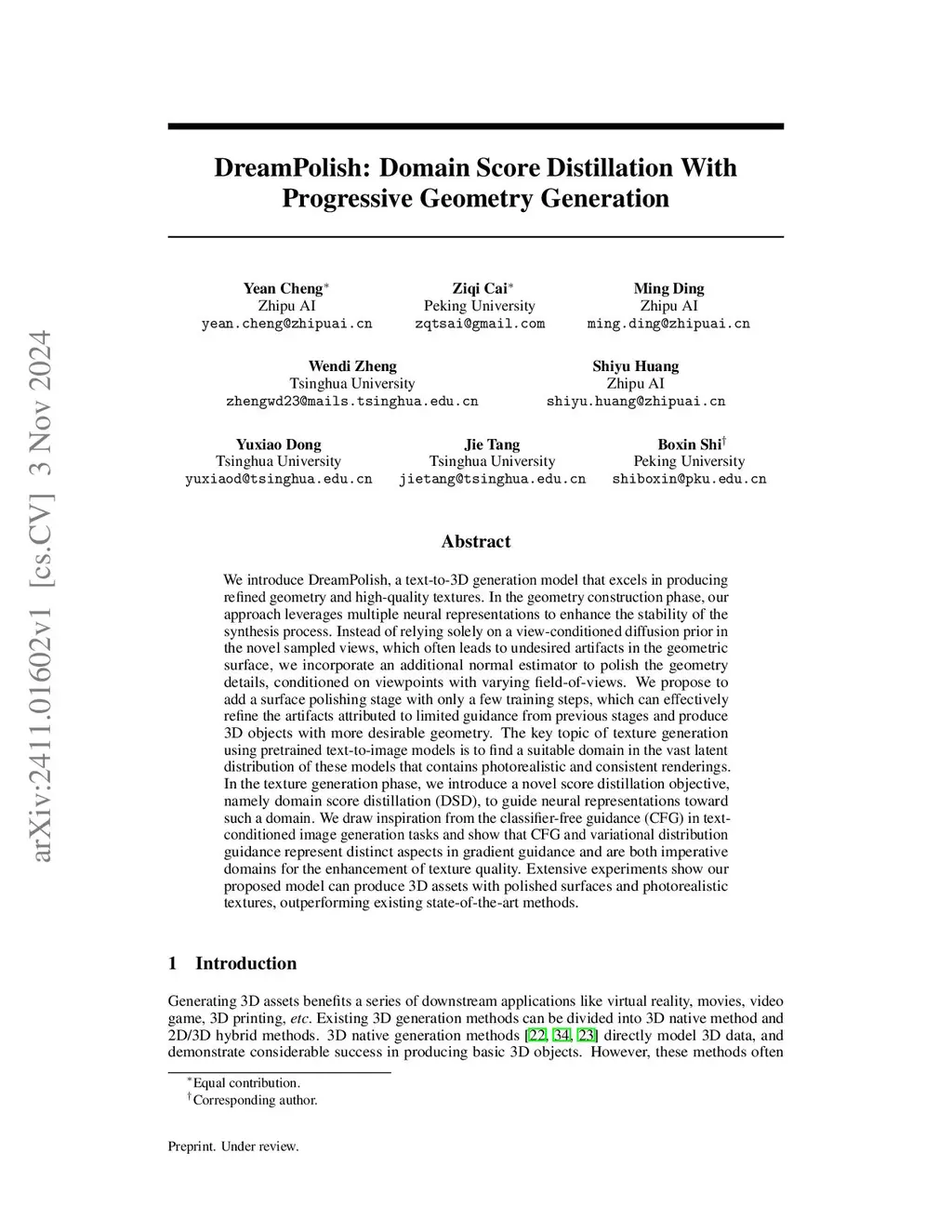 DreamPolish: Domain Score Distillation With Progressive Geometry