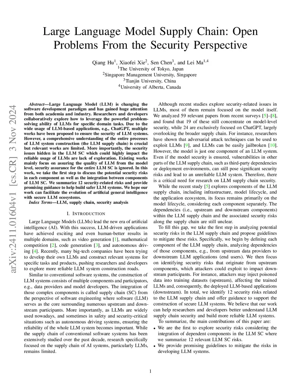 Large Language Model Supply Chain: Open Problems From the Security