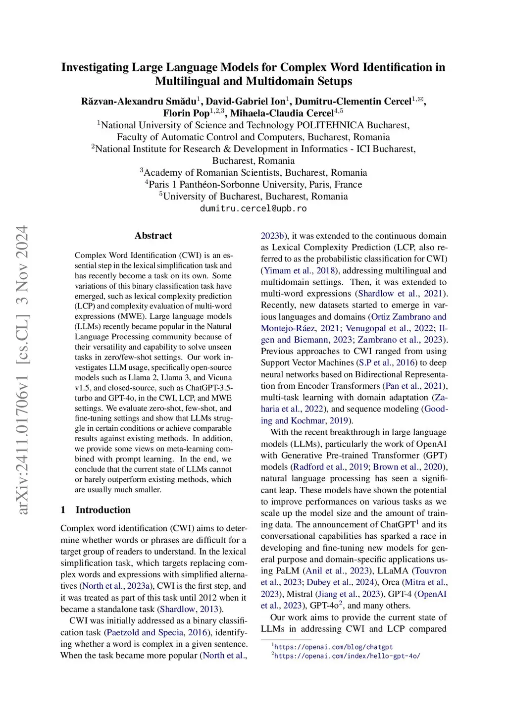 Investigating Large Language Models for Complex Word Identification in