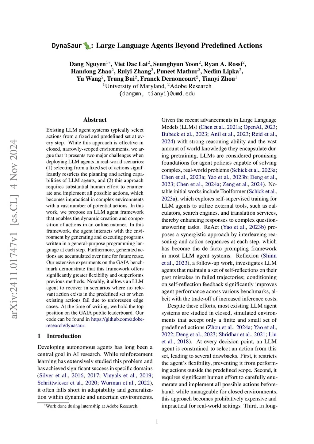 DynaSaur: Large Language Agents Beyond Predefined Actions