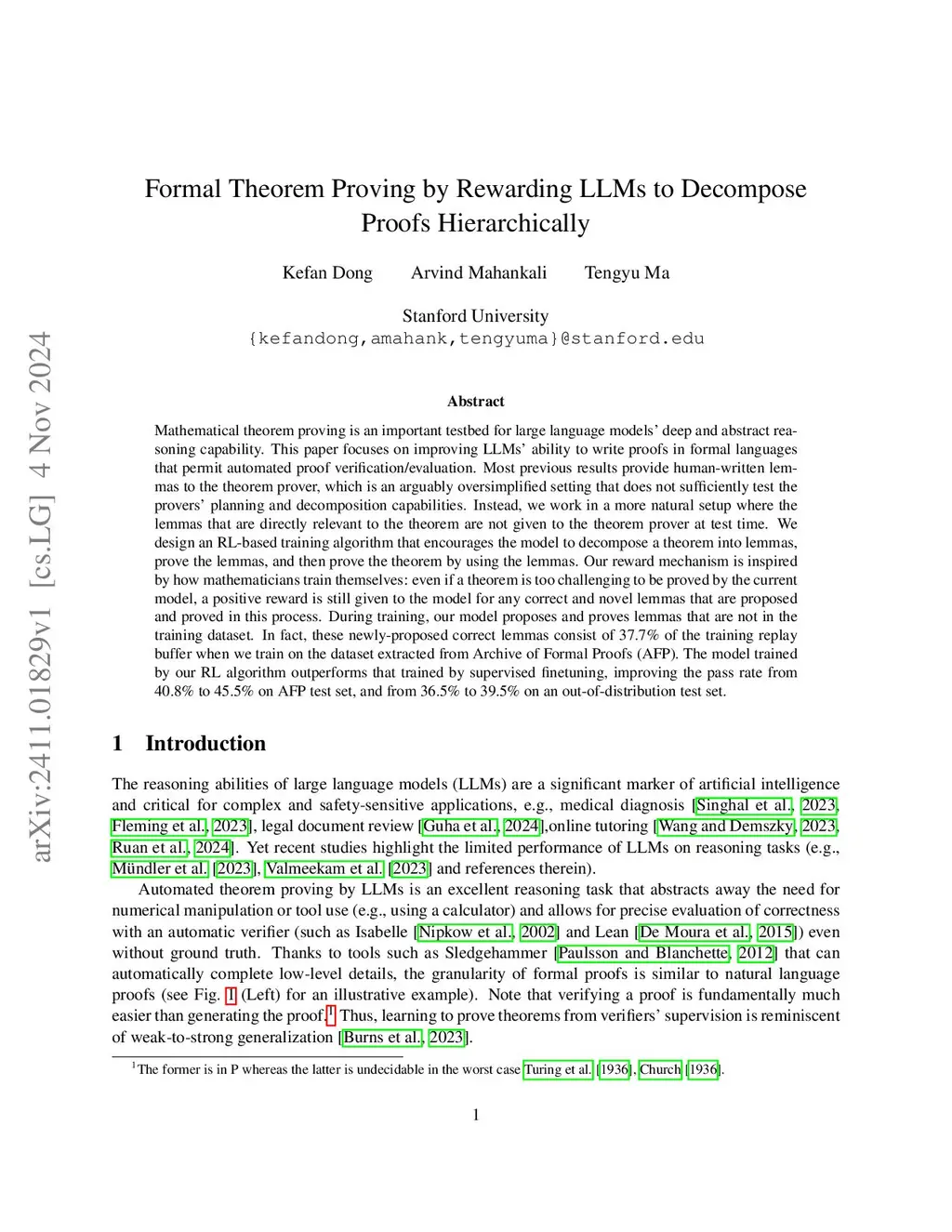 Formal Theorem Proving by Rewarding LLMs to Decompose Proofs