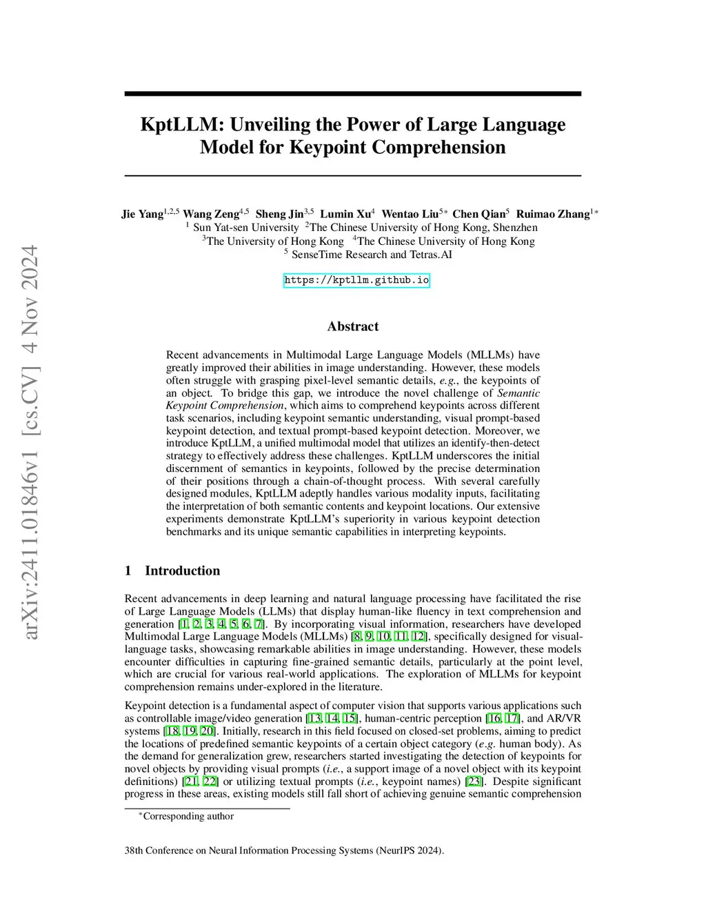 KptLLM: Unveiling the Power of Large Language Model for Keypoint