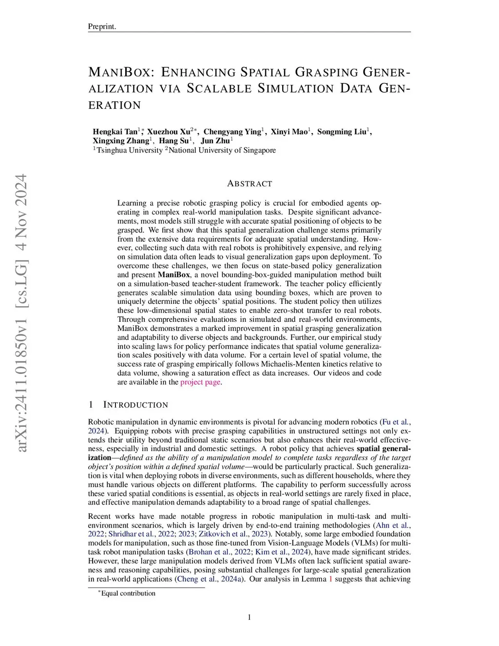 ManiBox: Enhancing Embodied Spatial Generalization via Scalable Simulation Data Generations