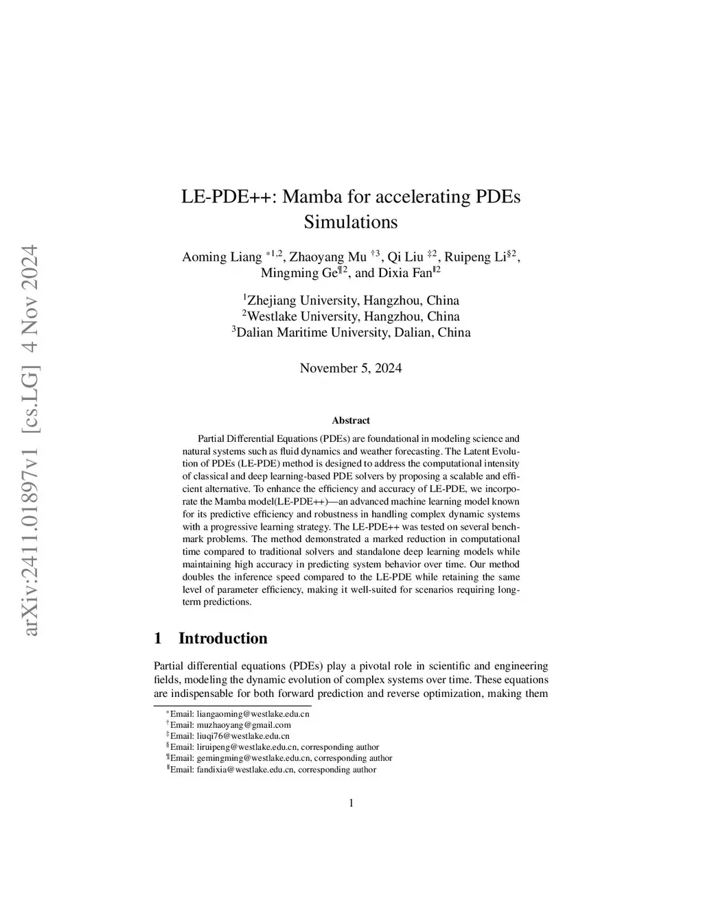 LE-PDE++: Mamba for accelerating PDEs Simulations