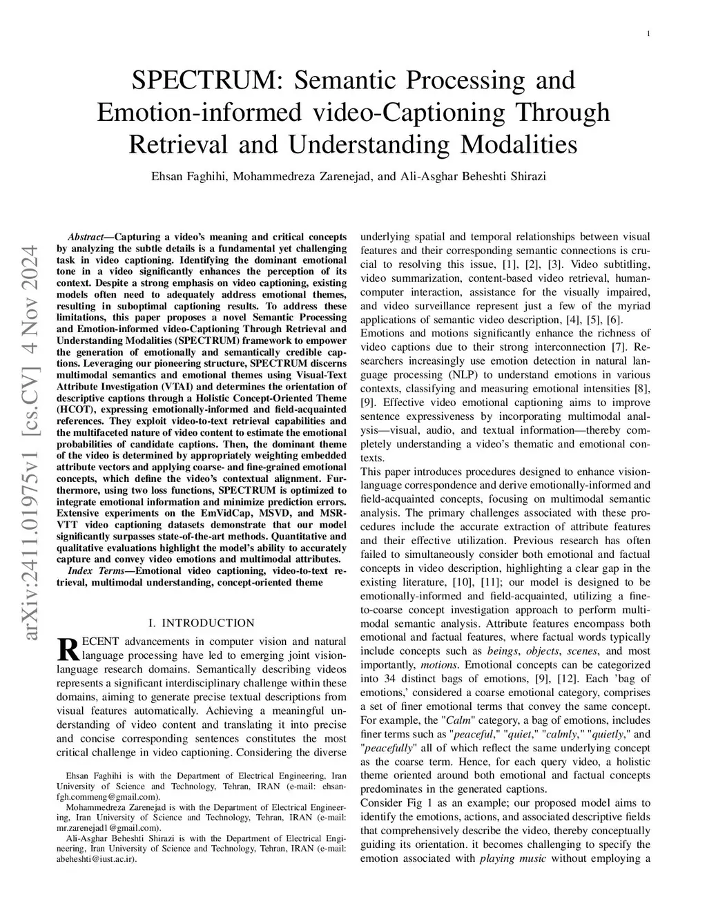 SPECTRUM: Semantic Processing and Emotion-informed video-Captioning