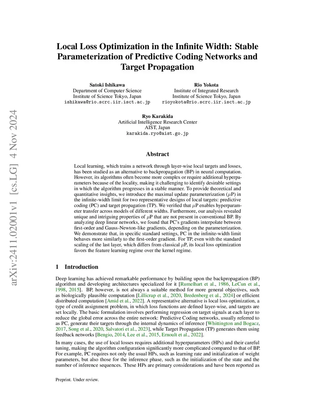 Local Loss Optimization in the Infinite Width: Stable Parameterization of Predictive Coding Networks and Target Propagation