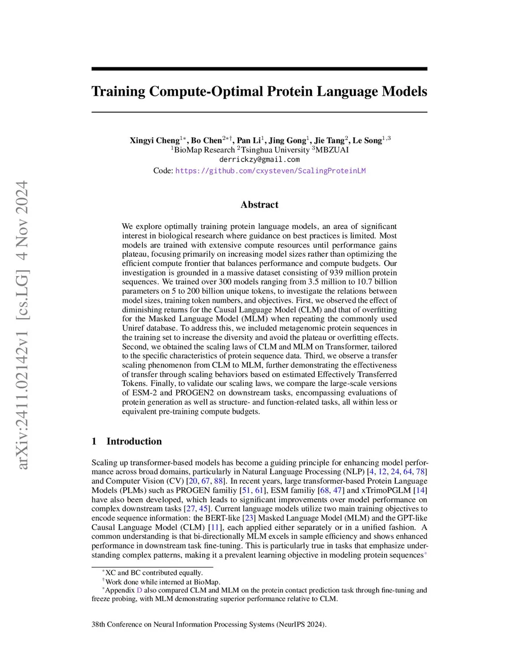 We explore optimally training protein language models, an area of significant interest in biological research where guidance on best practices is limited. Most models are trained with extensive compute resources until performance gains plateau, focusing primarily on increasing model sizes rather than optimizing the efficient compute frontier that balances performance and compute budgets. Our investigation is grounded in a massive dataset consisting of 939 million protein sequences. We trained over 300 models ranging from 3.5 million to 10.7 billion parameters on 5 to 200 billion unique tokens, to investigate the relations between model sizes, training token numbers, and objectives. First, we observed the effect of diminishing returns for the Causal Language Model (CLM) and that of overfitting for the Masked Language Model~(MLM) when repeating the commonly used Uniref database. To address this, we included metagenomic protein sequences in the training set to increase the diversity and avoid the plateau or overfitting effects. Second, we obtained the scaling laws of CLM and MLM on Transformer, tailored to the specific characteristics of protein sequence data. Third, we observe a transfer scaling phenomenon from CLM to MLM, further demonstrating the effectiveness of transfer through scaling behaviors based on estimated Effectively Transferred Tokens. Finally, to validate our scaling laws, we compare the large-scale versions of ESM-2 and PROGEN2 on downstream tasks, encompassing evaluations of protein generation as well as structure- and function-related tasks, all within less or equivalent pre-training compute budgets.