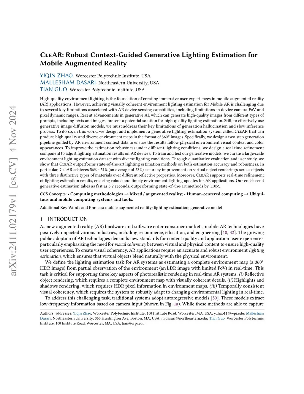 CleAR: Robust Context-Guided Generative Lighting Estimation for Mobile Augmented Reality