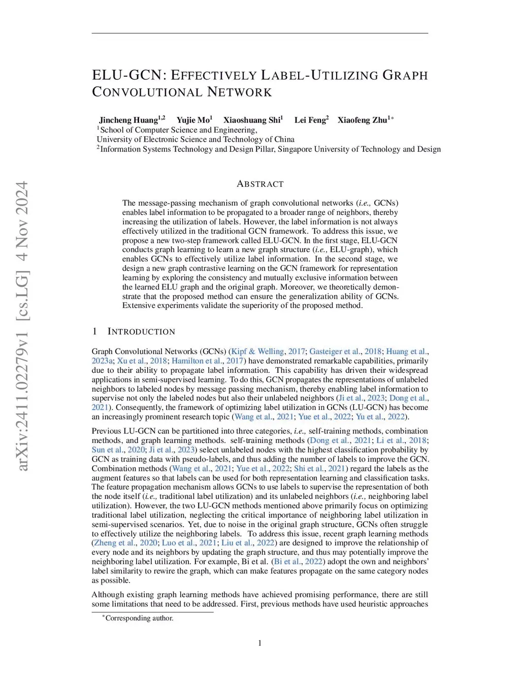 The message-passing mechanism of graph convolutional networks (i.e., GCNs) enables label information to reach more unlabeled neighbors, thereby increasing the utilization of labels. However, the additional label information does not always contribute positively to the GCN. To address this issue, we propose a new two-step framework called ELU-GCN. In the first stage, ELU-GCN conducts graph learning to learn a new graph structure (i.e., ELU-graph), which allows the additional label information to positively influence the predictions of GCN. In the second stage, we design a new graph contrastive learning on the GCN framework for representation learning by exploring the consistency and mutually exclusive information between the learned ELU graph and the original graph. Moreover, we theoretically demonstrate that the proposed method can ensure the generalization ability of GCNs. Extensive experiments validate the superiority of our method.