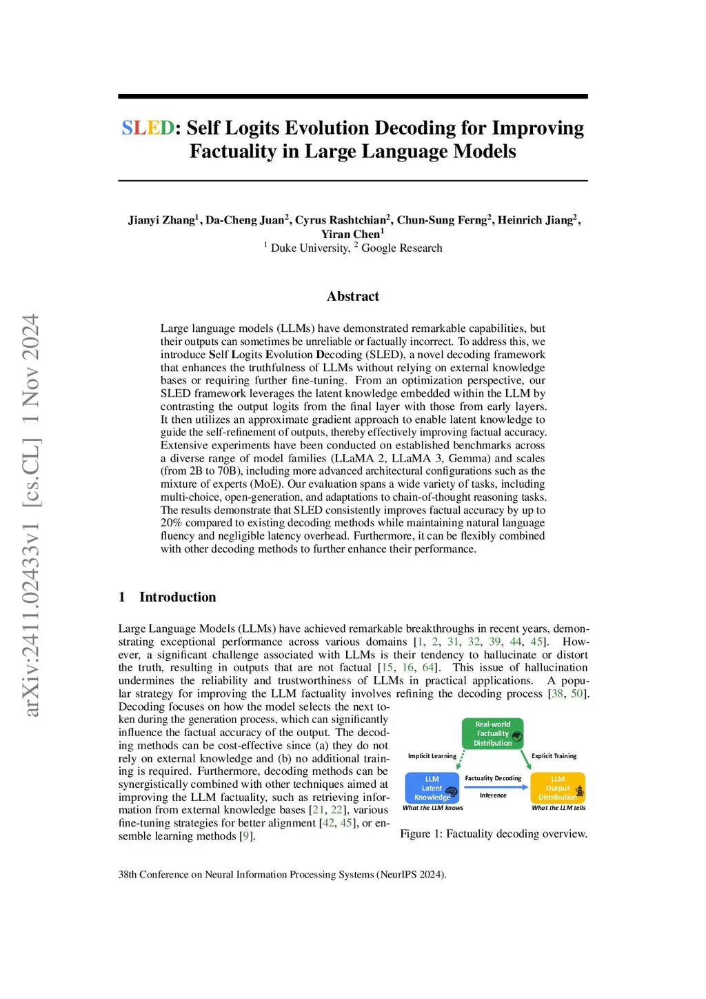 SLED: Self Logits Evolution Decoding for Improving Factuality in Large Language Models