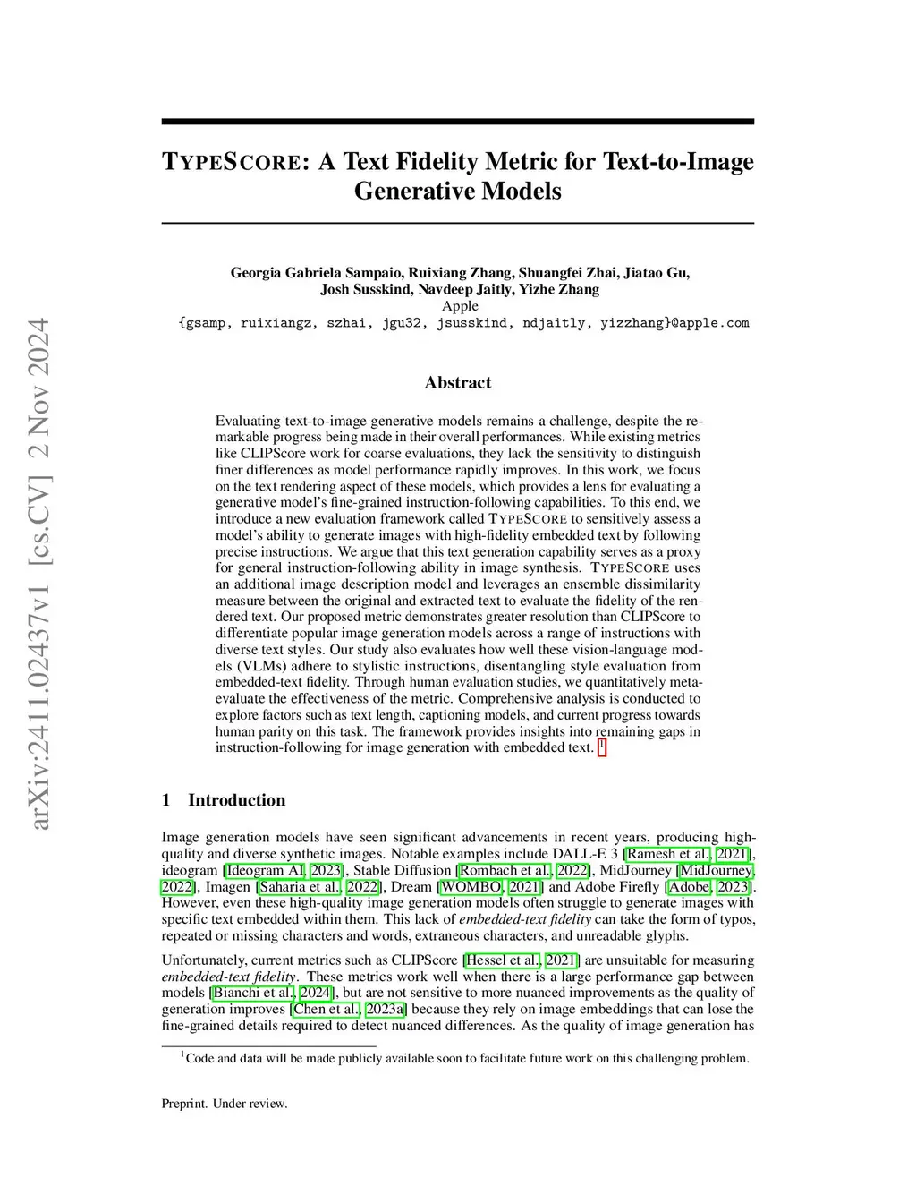 TypeScore: A Text Fidelity Metric for Text-to-Image Generative Models