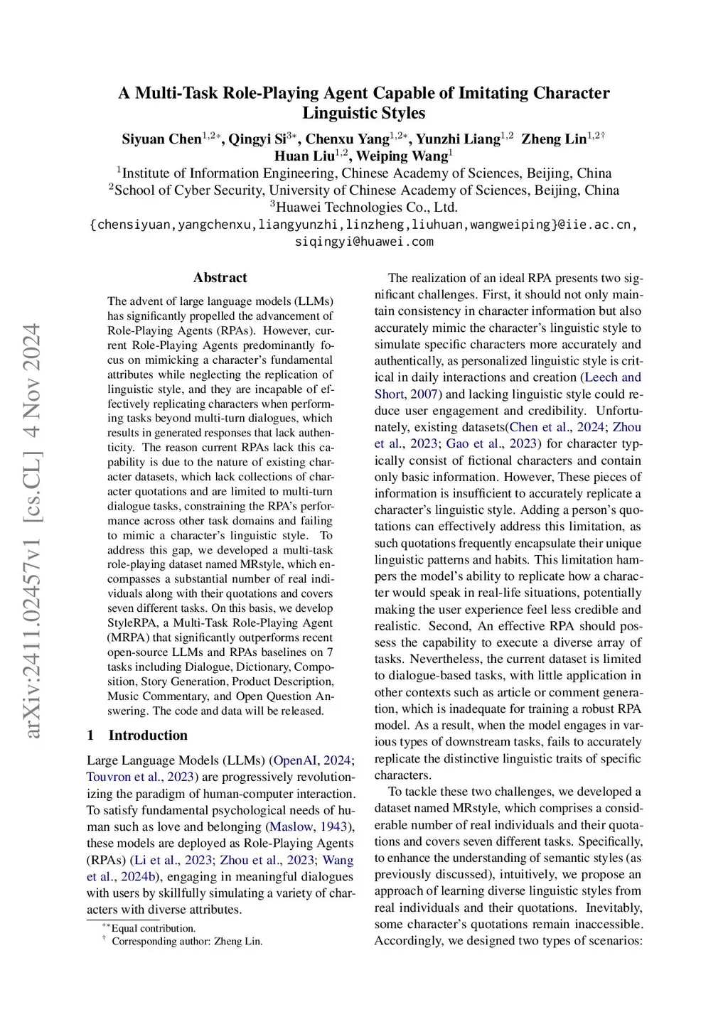 The advent of large language models (LLMs) has significantly propelled the advancement of Role-Playing Agents (RPAs). However, current Role-Playing Agents predominantly focus on mimicking a character's fundamental attributes while neglecting the replication of linguistic style, and they are incapable of effectively replicating characters when performing tasks beyond multi-turn dialogues, which results in generated responses that lack authenticity. The reason current RPAs lack this capability is due to the nature of existing character datasets, which lack collections of character quotations and are limited to multi-turn dialogue tasks, constraining the RPA's performance across other task domains and failing to mimic a character's linguistic style. To address this gap, we developed a multi-task role-playing dataset named MRstyle, which encompasses a substantial number of real individuals along with their quotations and covers seven different tasks. On this basis, we develop StyleRPA, a Multi-Task Role-Playing Agent (MRPA) that significantly outperforms recent open-source LLMs and RPAs baselines on 7 tasks including Dialogue, Dictionary, Composition, Story Generation, Product Description, Music Commentary, and Open Question Answering. The code and data will be released.