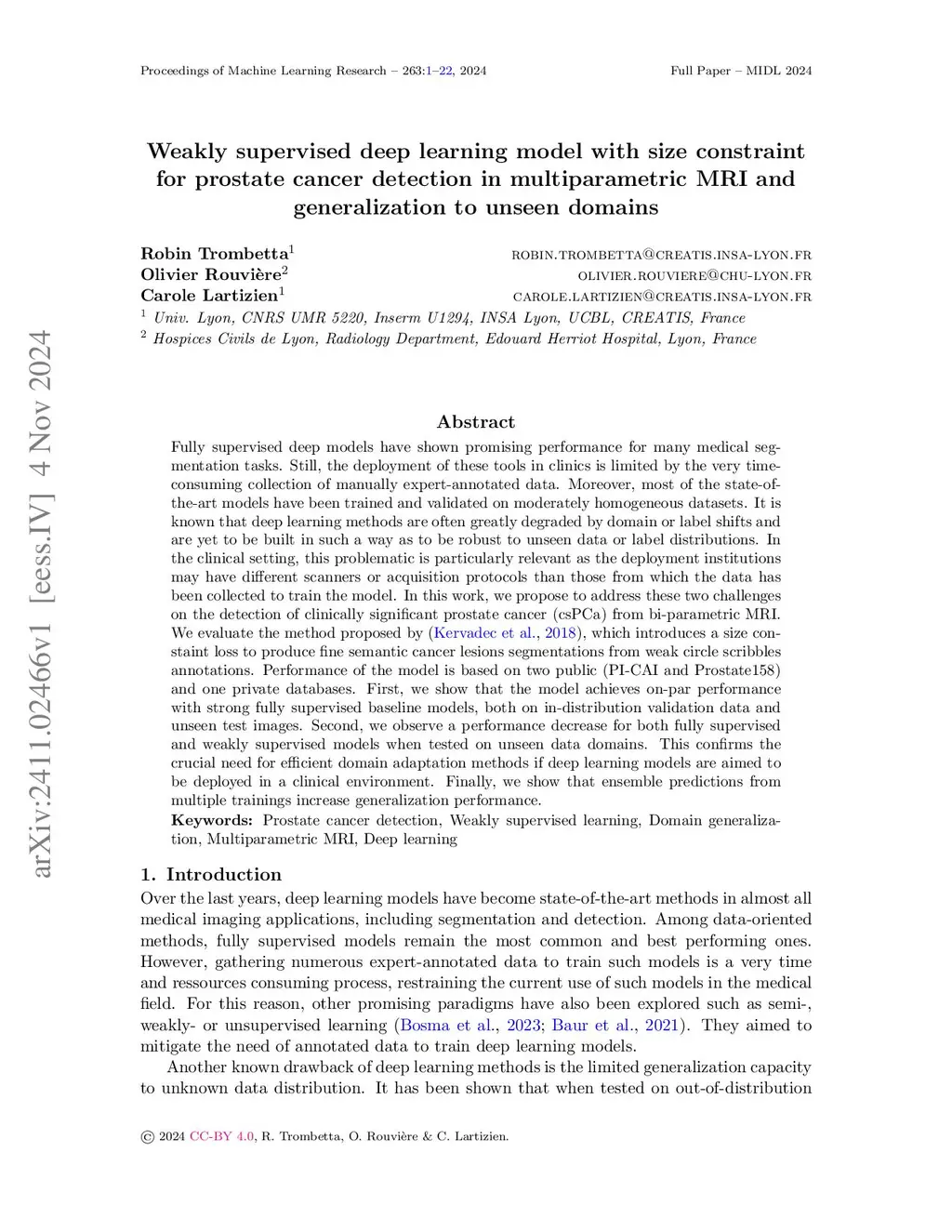 cancer detection in multiparametric MRI and generalization to unseen domains