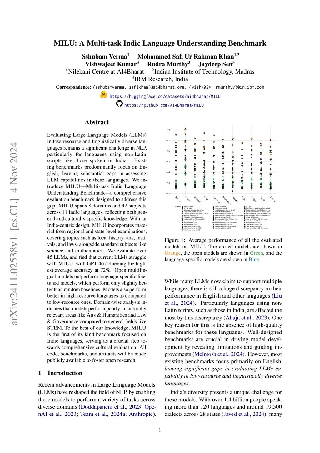 MILU: A Multi-task Indic Language Understanding Benchmark