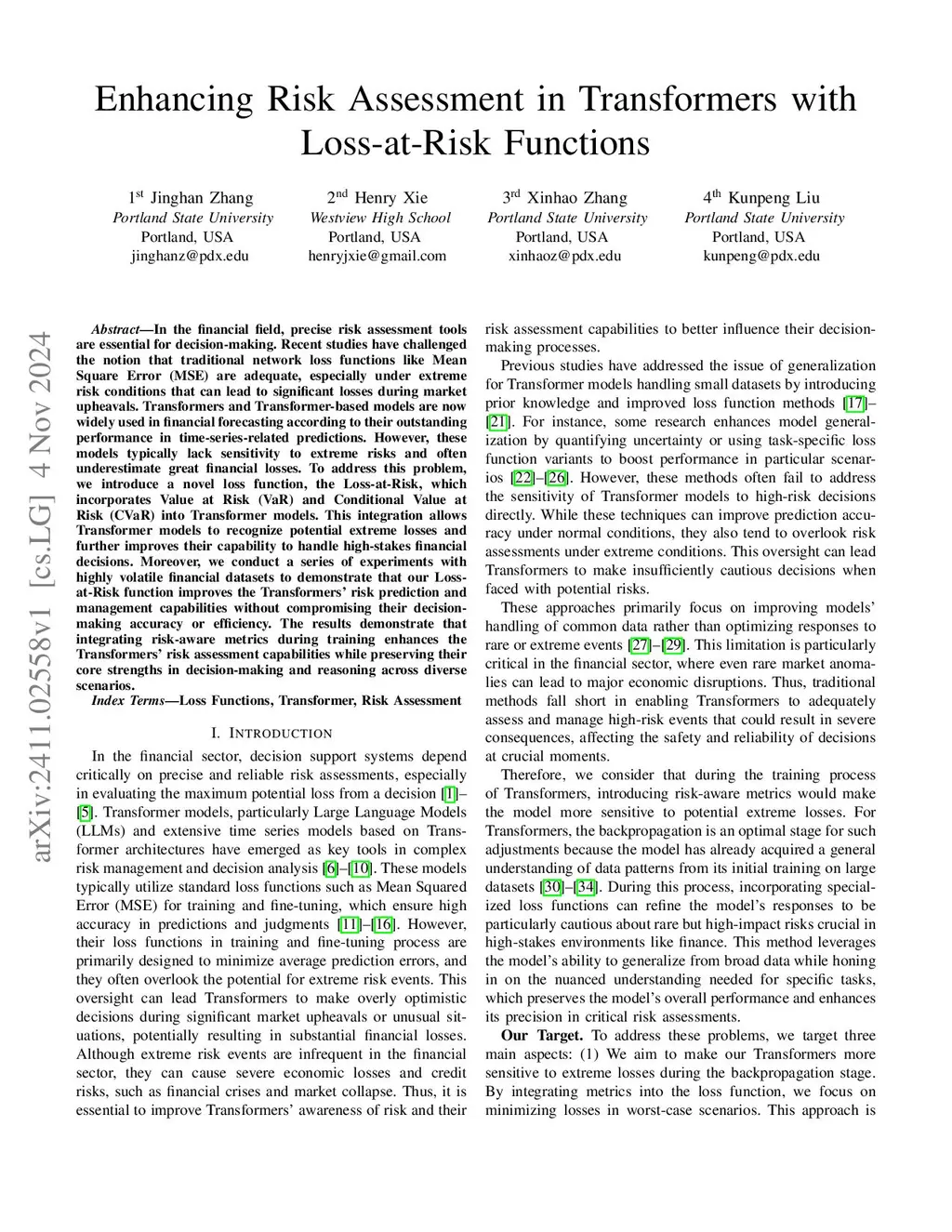 In the financial field, precise risk assessment tools are essential for decision-making. Recent studies have challenged the notion that traditional network loss functions like Mean Square Error (MSE) are adequate, especially under extreme risk conditions that can lead to significant losses during market upheavals. Transformers and Transformer-based models are now widely used in financial forecasting according to their outstanding performance in time-series-related predictions. However, these models typically lack sensitivity to extreme risks and often underestimate great financial losses. To address this problem, we introduce a novel loss function, the Loss-at-Risk, which incorporates Value at Risk (VaR) and Conditional Value at Risk (CVaR) into Transformer models. This integration allows Transformer models to recognize potential extreme losses and further improves their capability to handle high-stakes financial decisions. Moreover, we conduct a series of experiments with highly volatile financial datasets to demonstrate that our Loss-at-Risk function improves the Transformers' risk prediction and management capabilities without compromising their decision-making accuracy or efficiency. The results demonstrate that integrating risk-aware metrics during training enhances the Transformers' risk assessment capabilities while preserving their core strengths in decision-making and reasoning across diverse scenarios.
