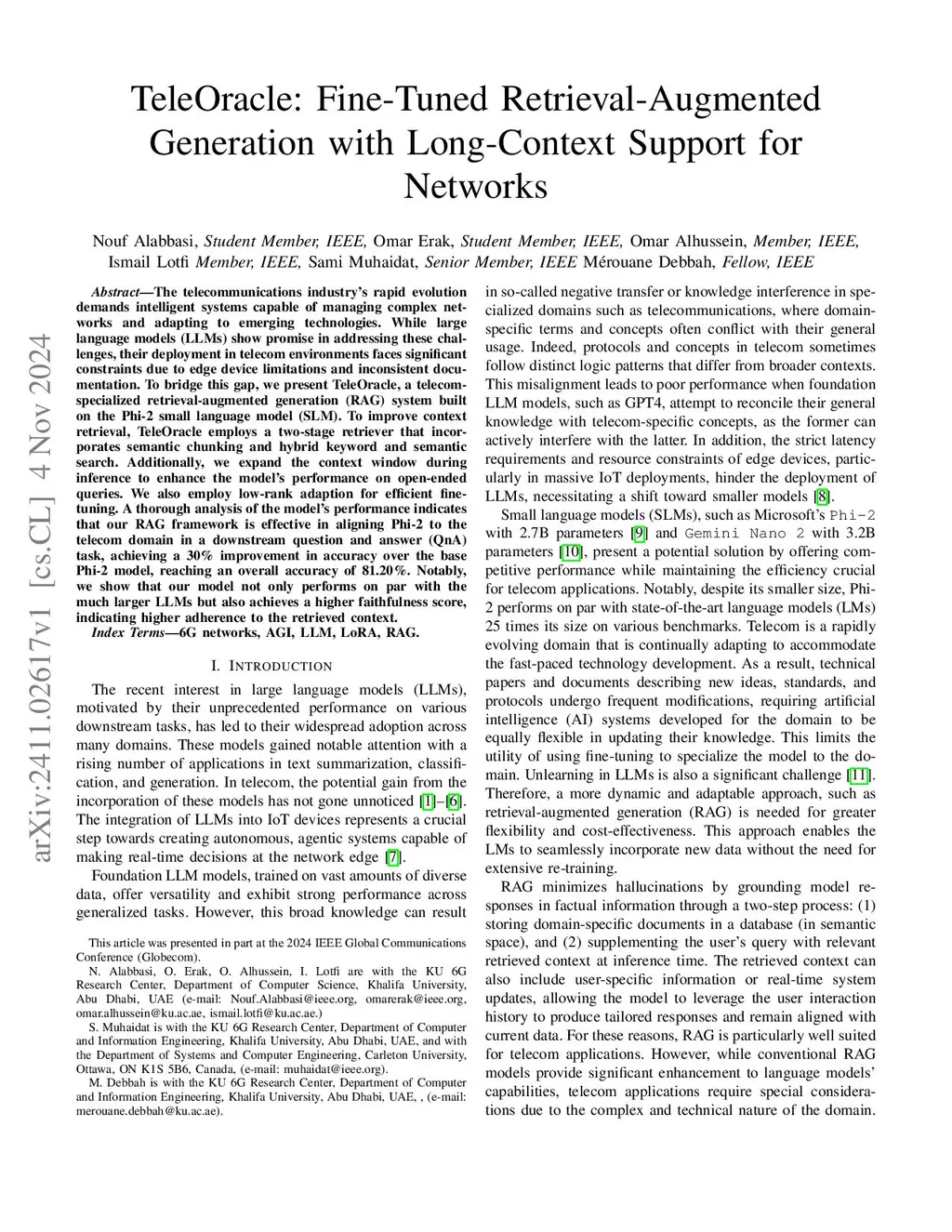 TeleOracle: Fine-Tuned Retrieval-Augmented Generation with Long-Context