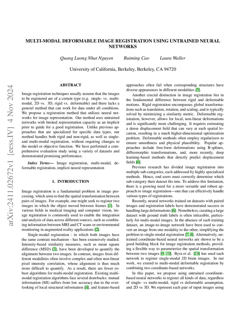 Multi-modal deformable image registration using untrained neural networks