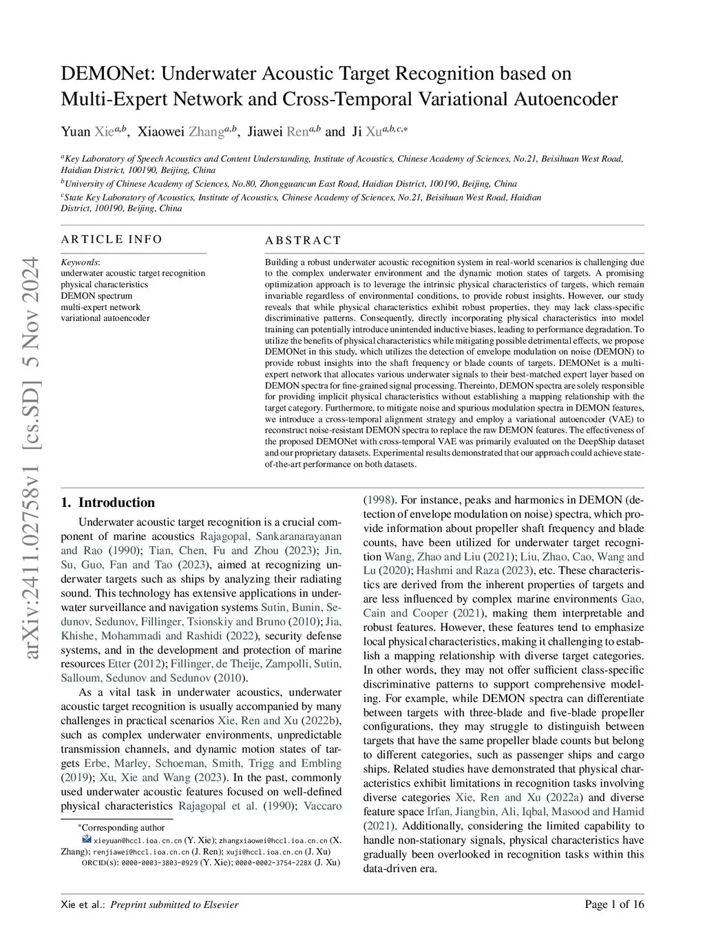 DEMONet: Underwater Acoustic Target Recognition based on Multi-Expert