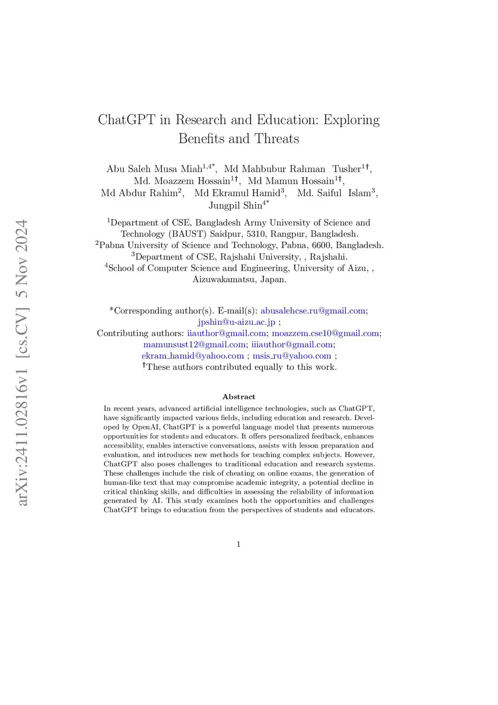 ChatGPT in Research and Education: Exploring Benefits and Threats