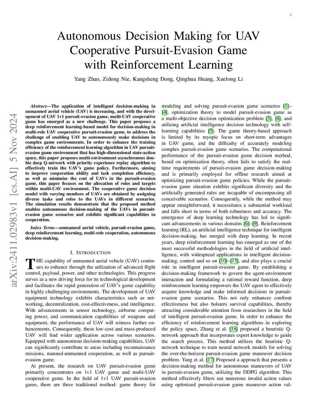 Autonomous Decision Making for UAV Cooperative Pursuit-Evasion Game with
