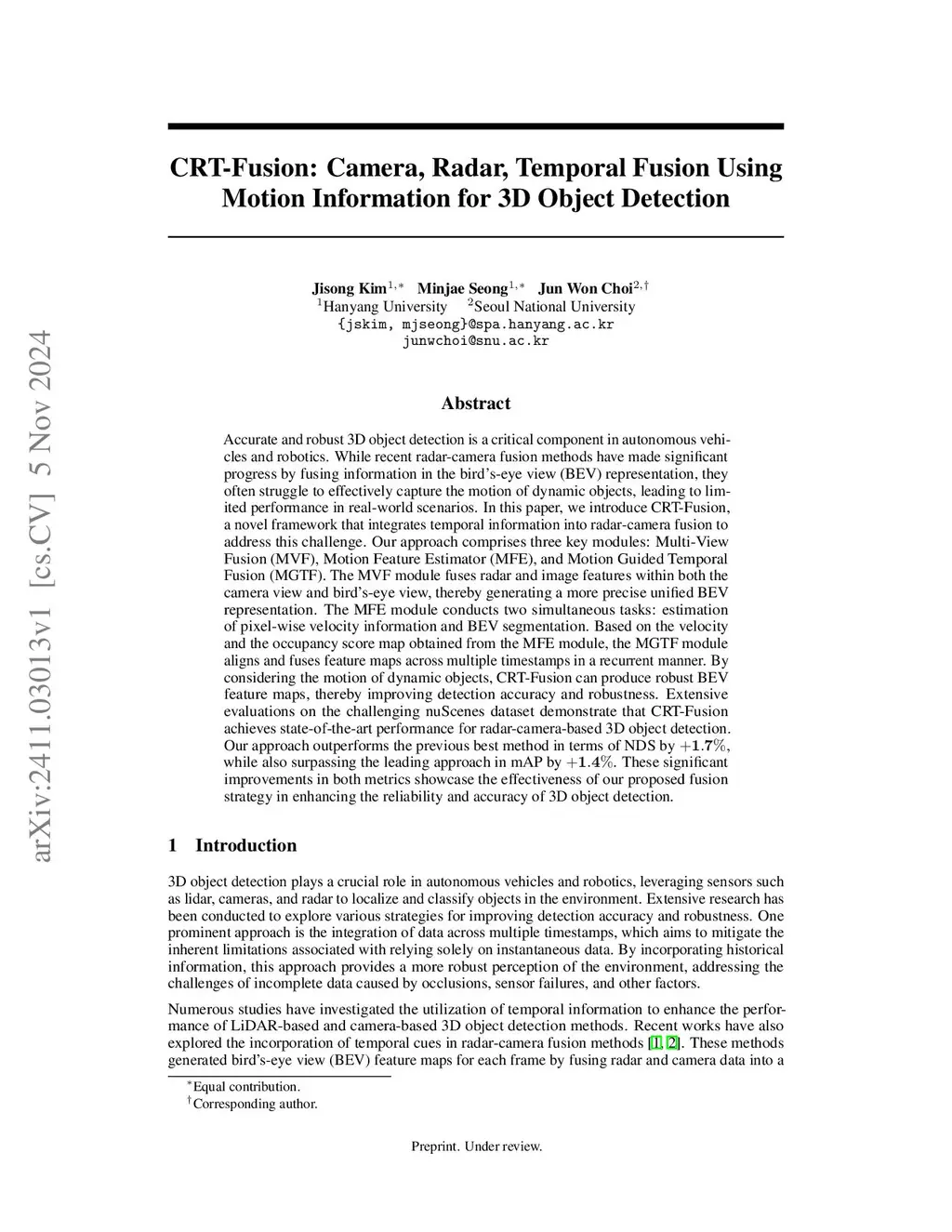 CRT-Fusion: Camera, Radar, Temporal Fusion Using Motion Information for