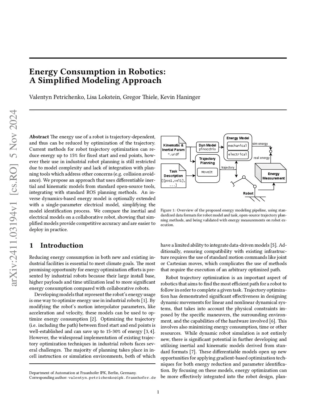 Energy Consumption in Robotics: A Simplified Modeling Approach