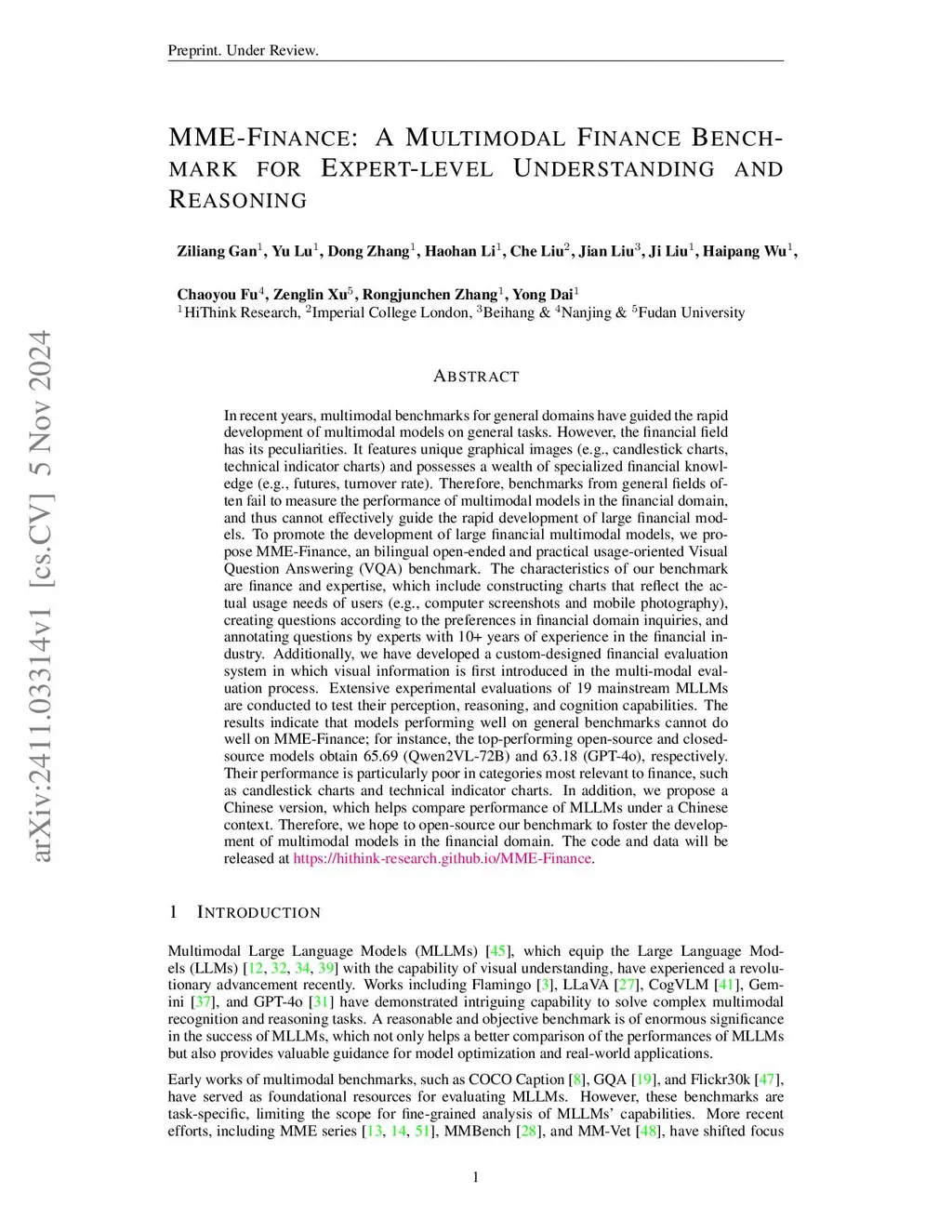 MME-Finance: A Multimodal Finance Benchmark for Expert-level