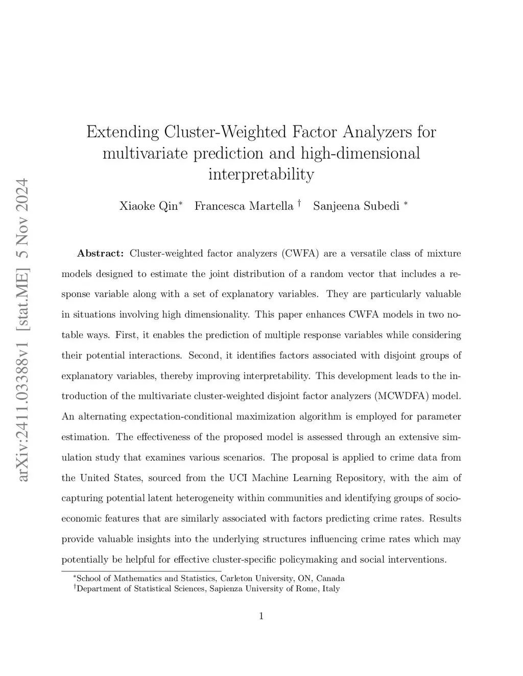 Cluster-weighted factor analyzers (CWFA) are a versatile class of mixture models designed to estimate the joint distribution of a random vector that includes a response variable along with a set of explanatory variables. They are particularly valuable in situations involving high dimensionality. This paper enhances CWFA models in two notable ways. First, it enables the prediction of multiple response variables while considering their potential interactions. Second, it identifies factors associated with disjoint groups of explanatory variables, thereby improving interpretability. This development leads to the introduction of the multivariate cluster-weighted disjoint factor analyzers (MCWDFA) model. An alternating expectation-conditional maximization algorithm is employed for parameter estimation. The effectiveness of the proposed model is assessed through an extensive simulation study that examines various scenarios. The proposal is applied to crime data from the United States, sourced from the UCI Machine Learning Repository, with the aim of capturing potential latent heterogeneity within communities and identifying groups of socio-economic features that are similarly associated with factors predicting crime rates. Results provide valuable insights into the underlying structures influencing crime rates which may potentially be helpful for effective cluster-specific policymaking and social interventions.