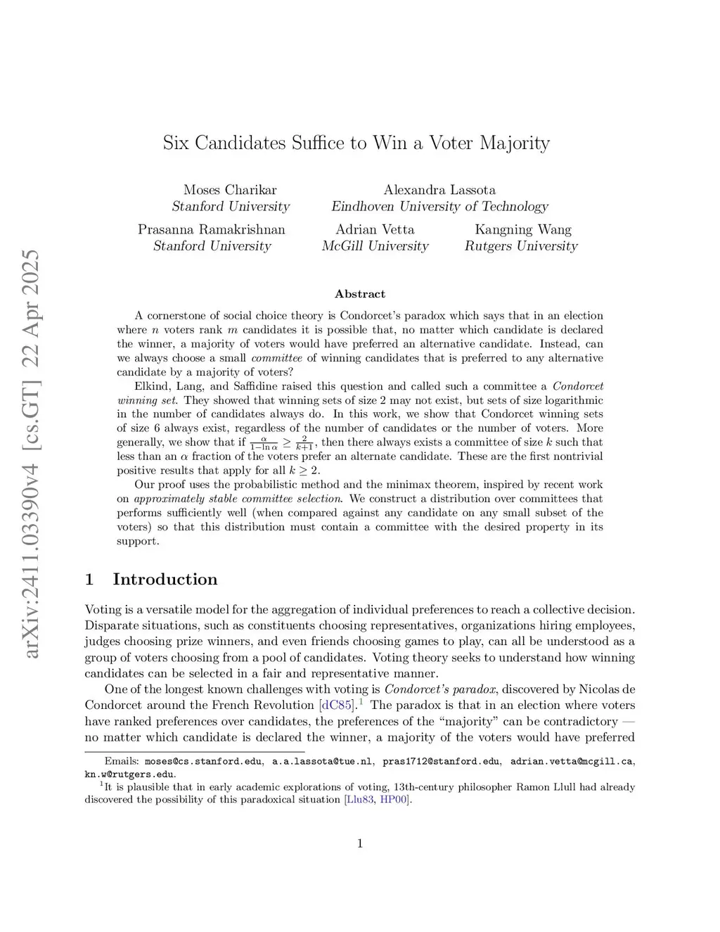 Six Candidates Suffice to Win a Voter Majority