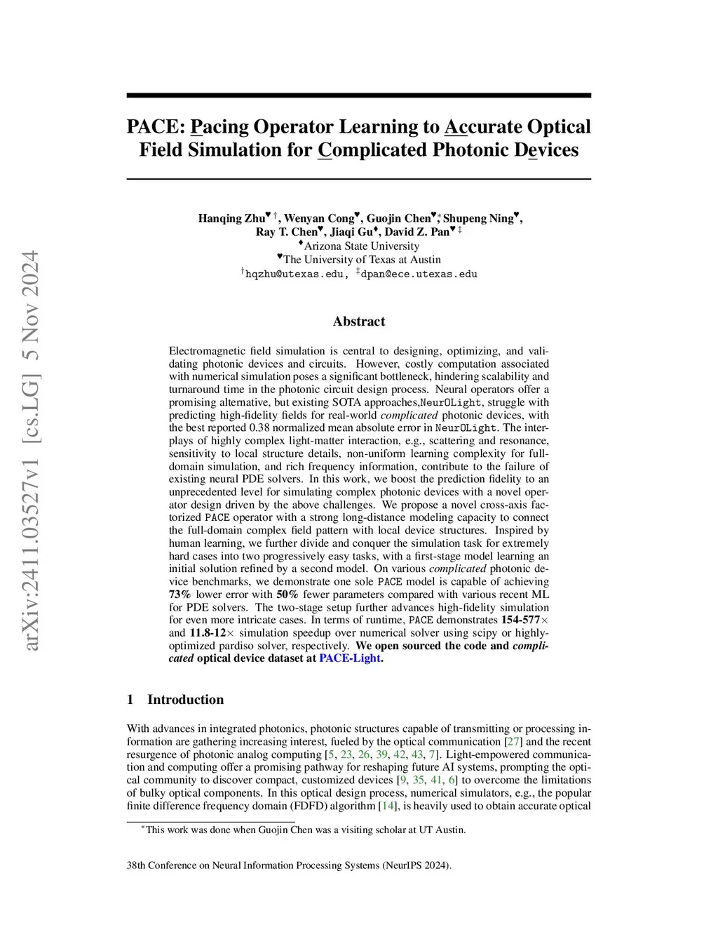 PACE: Pacing Operator Learning to Accurate Optical Field Simulation for