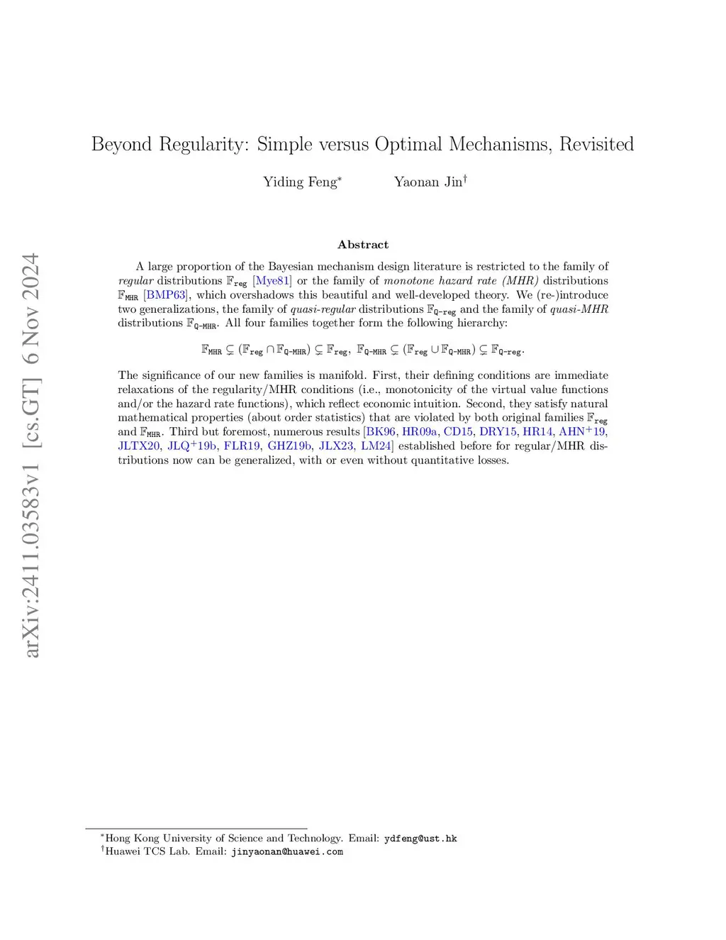 A large proportion of the Bayesian mechanism design literature is restricted to the family of regular distributions [Mye81] or the family of monotone hazard rate (MHR) distributions [BMP63], which overshadows this beautiful and well-developed theory. We (re-)introduce two generalizations, the family of quasi-regular distributions and the family of quasi-MHR distributions . All four families together form the following hierarchy: and . The significance of our new families is manifold. First, their defining conditions are immediate relaxations of the regularity/MHR conditions (i.e., monotonicity of the virtual value functions and/or the hazard rate functions), which reflect economic intuition. Second, they satisfy natural mathematical properties (about order statistics) that are violated by both original families and . Third but foremost, numerous results [BK96, HR09a, CD15, DRY15, HR14, AHN+19, JLTX20, JLQ+19b, FLR19, GHZ19b, JLX23, LM24] established before for regular/MHR distributions now can be generalized, with or even without quantitative losses.