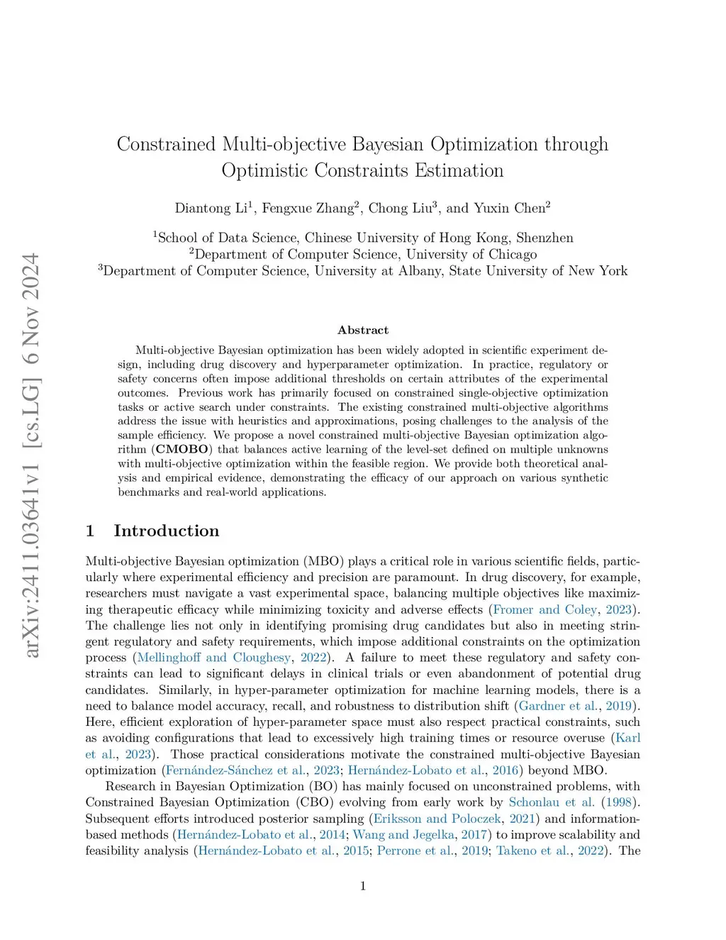 Constrained Multi-objective Bayesian Optimization through Optimistic Constraints Estimation