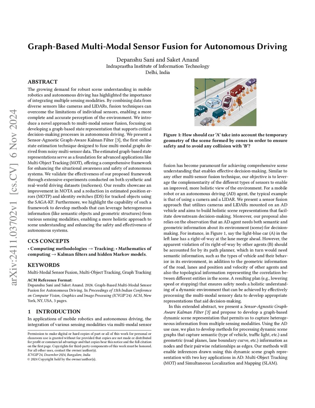 The growing demand for robust scene understanding in mobile robotics and autonomous driving has highlighted the importance of integrating multiple sensing modalities. By combining data from diverse sensors like cameras and LIDARs, fusion techniques can overcome the limitations of individual sensors, enabling a more complete and accurate perception of the environment. We introduce a novel approach to multi-modal sensor fusion, focusing on developing a graph-based state representation that supports critical decision-making processes in autonomous driving. We present a Sensor-Agnostic Graph-Aware Kalman Filter [3], the first online state estimation technique designed to fuse multi-modal graphs derived from noisy multi-sensor data. The estimated graph-based state representations serve as a foundation for advanced applications like Multi-Object Tracking (MOT), offering a comprehensive framework for enhancing the situational awareness and safety of autonomous systems. We validate the effectiveness of our proposed framework through extensive experiments conducted on both synthetic and real-world driving datasets (nuScenes). Our results showcase an improvement in MOTA and a reduction in estimated position errors (MOTP) and identity switches (IDS) for tracked objects using the SAGA-KF. Furthermore, we highlight the capability of such a framework to develop methods that can leverage heterogeneous information (like semantic objects and geometric structures) from various sensing modalities, enabling a more holistic approach to scene understanding and enhancing the safety and effectiveness of autonomous systems.