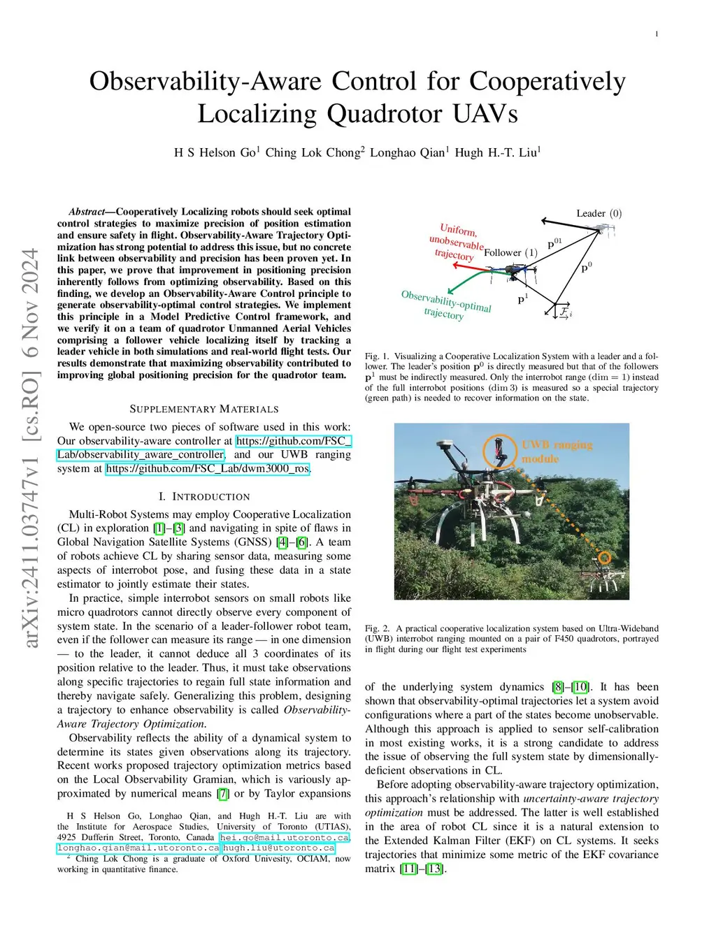 Cooperative Localization is a promising approach to achieving safe quadrotor formation flight through precise positioning via low-cost inter-drone sensors. This paper develops an observability-aware control principle tailored to quadrotor formation flight with range-only inter-drone measurements. The control principle is based on a novel approximation of the local observability Gramian (LOG), which we name the Short-Term Local Observability Gramian (STLOG). The validity of STLOG is established by proving its link to directional estimation precision in nonlinear systems. We propose the Observability Predictive Controller (OPC), a receding-horizon controller that generates optimal inputs to enhance information gain in weakly observable state directions by maximizing the minimum eigenvalue of the STLOG. This reduces the risk of estimator divergence due to the unbounded growth of uncertainty in weakly observed state components. Monte Carlo simulations and flight experiments are conducted with quadrotors in a GNSS-denied ferrying mission, showing that the OPC improves positioning confidence and estimator robustness.