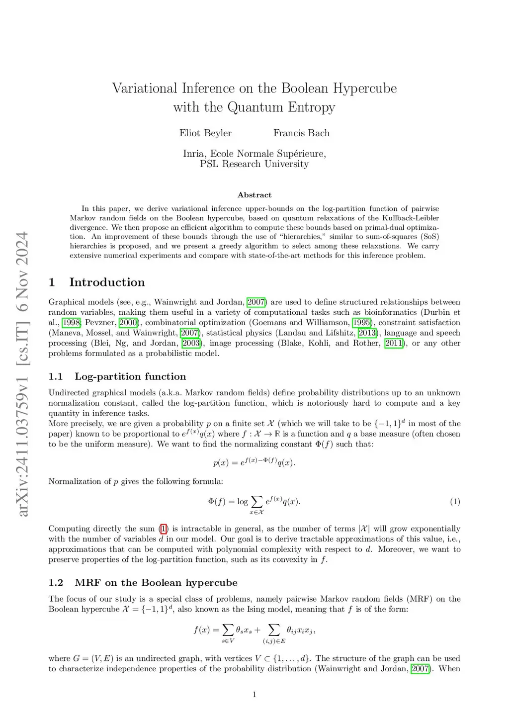 Variational Inference on the Boolean Hypercube with the Quantum Entropy