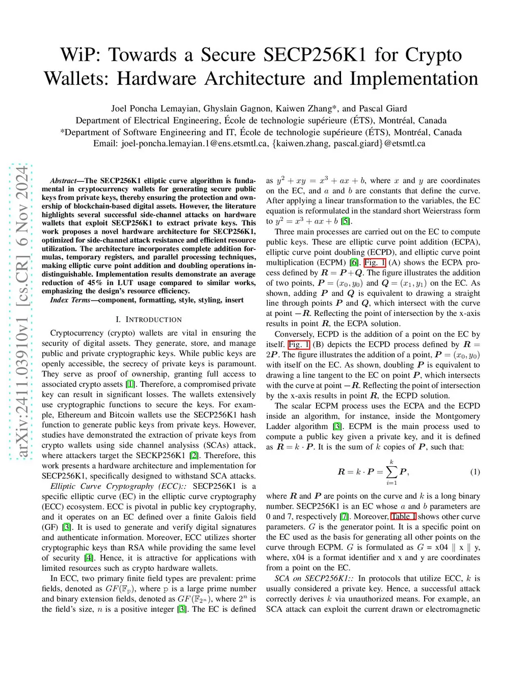 WiP: Towards a Secure SECP256K1 for Crypto Wallets: Hardware