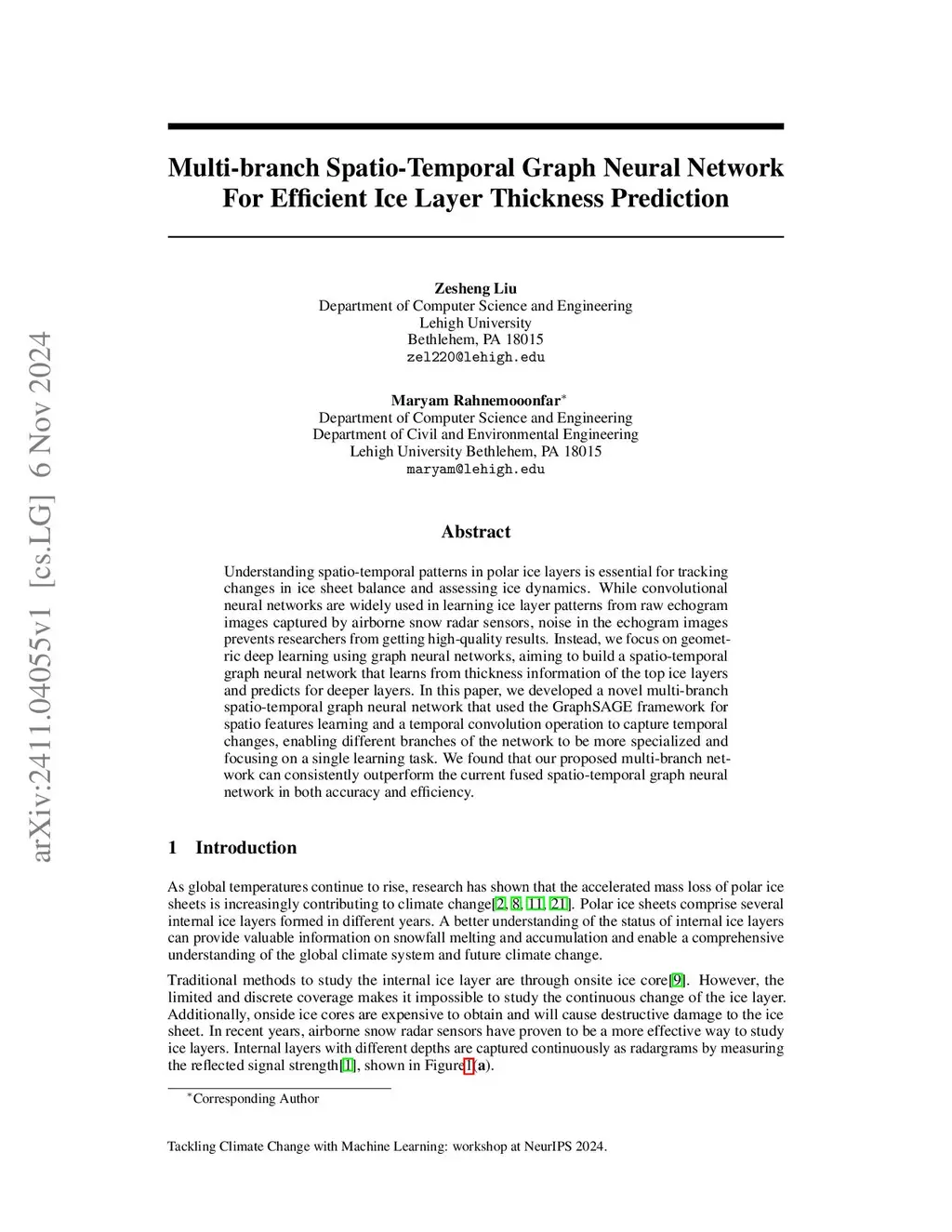 Multi-branch Spatio-Temporal Graph Neural Network For Efficient Ice