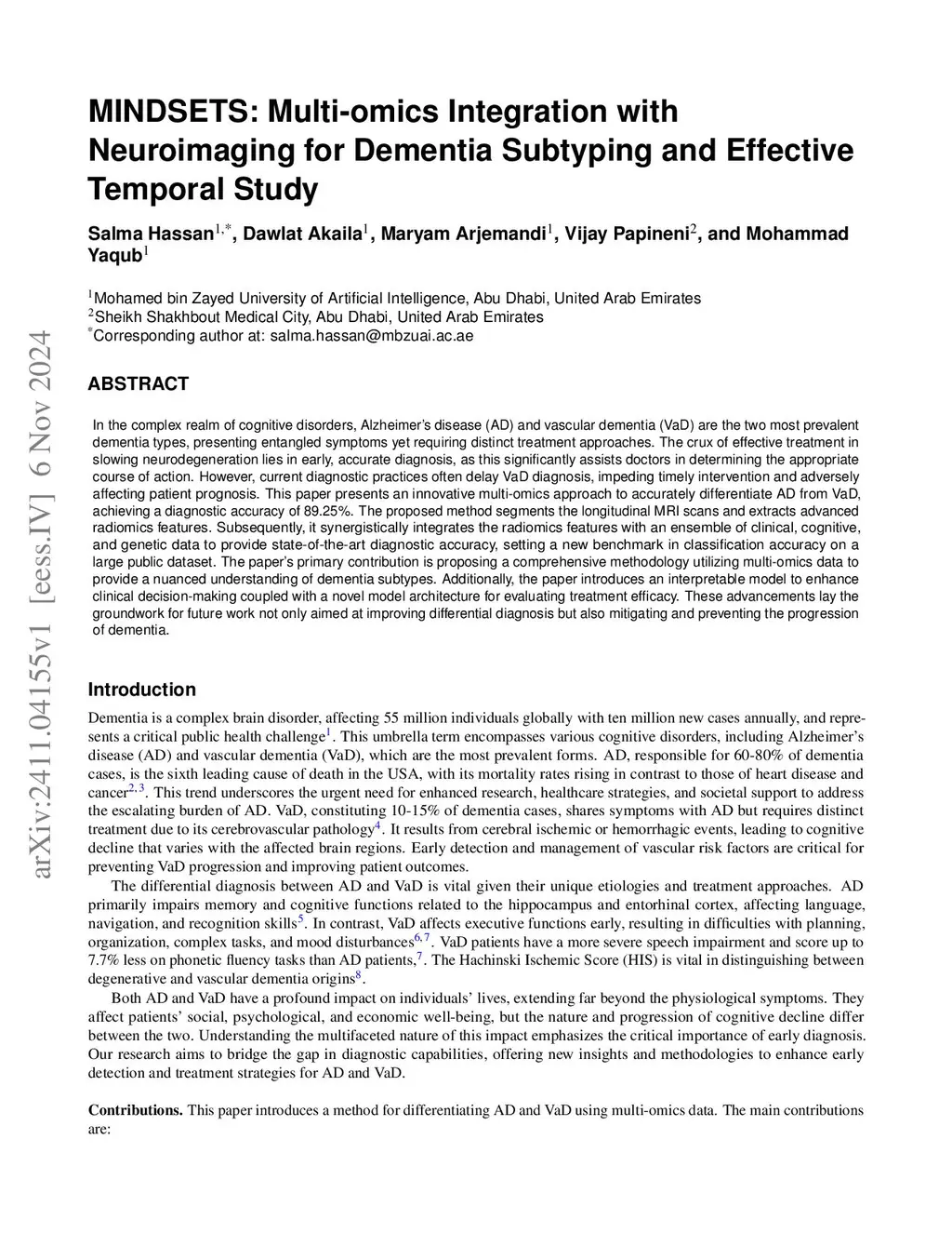 MINDSETS: Multi-omics Integration with Neuroimaging for Dementia