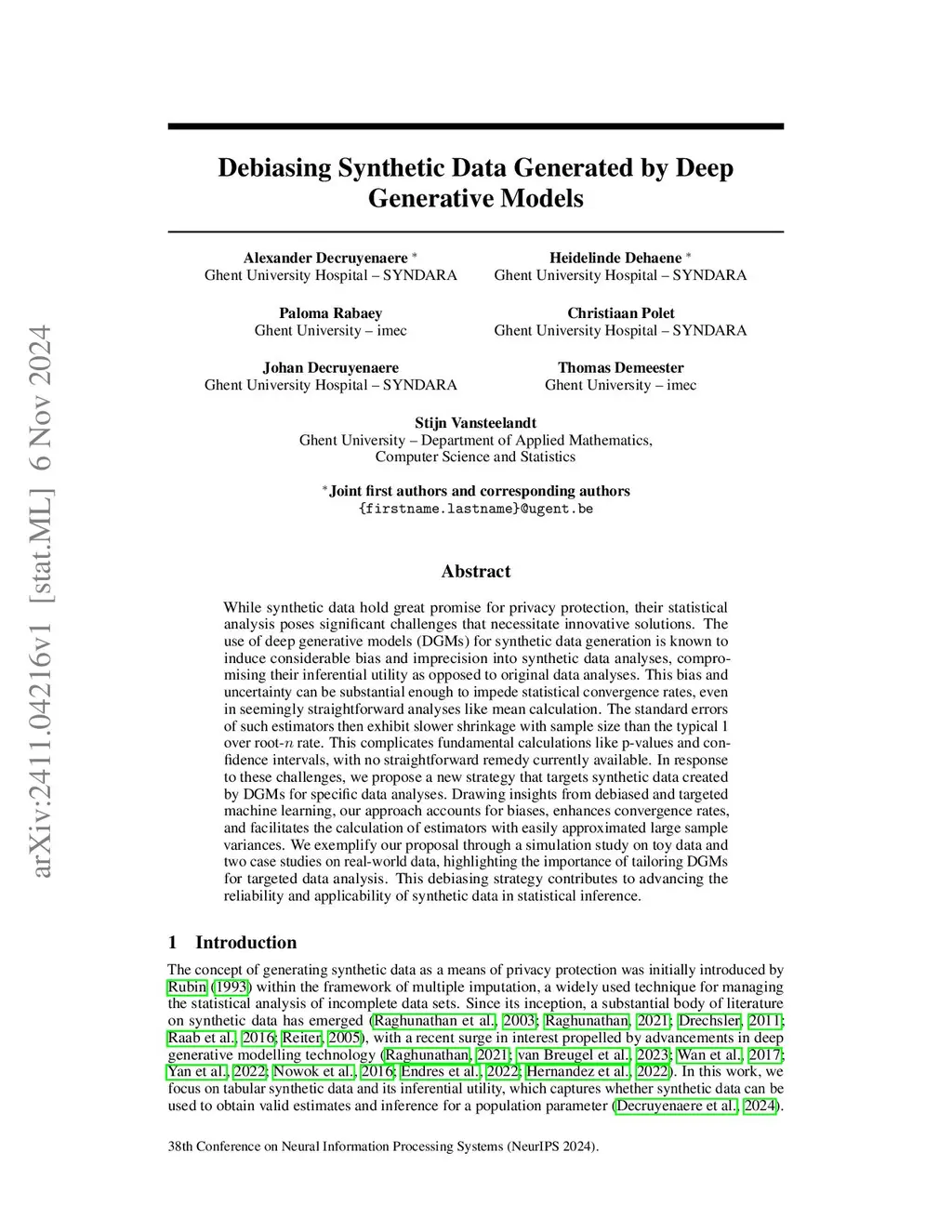 Debiasing Synthetic Data Generated by Deep Generative Models